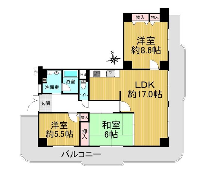 ・広々3面バルコニーあり